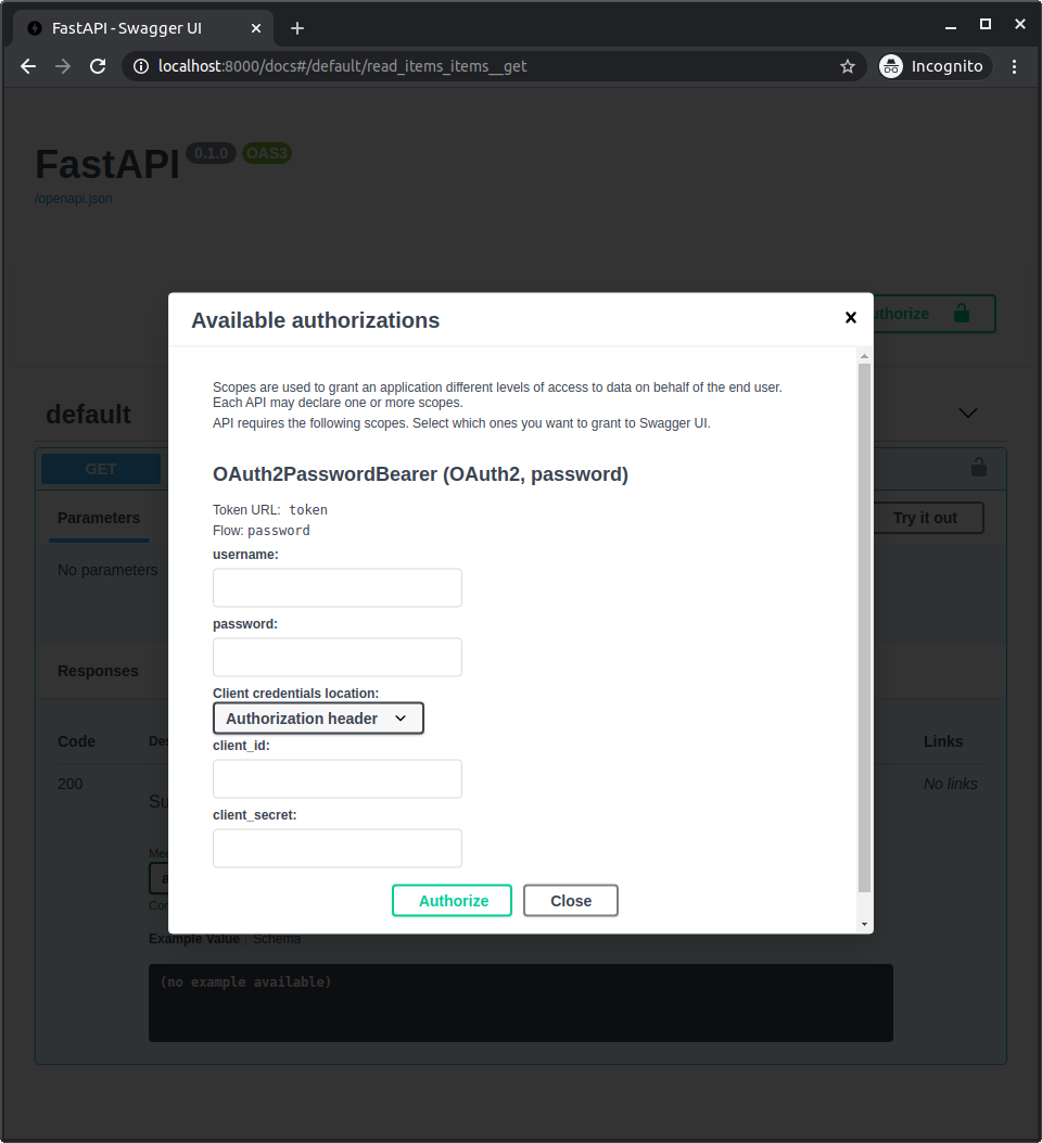 async def read_items(token: str = Depends(oauth2_scheme)):